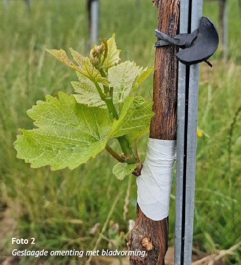 Een nadeel van omenten, is dat het slagingspercentage veelal lager ligt dan bij het heraanplanten van wijnstokken. Dat zagen we ook al in de wijngaard van pcfruit. Een mislukte ent kan je pas in het jaar na de eerste poging opnieuw omenten en daardoor kan er heterogeniteit in het perceel ontstaan.